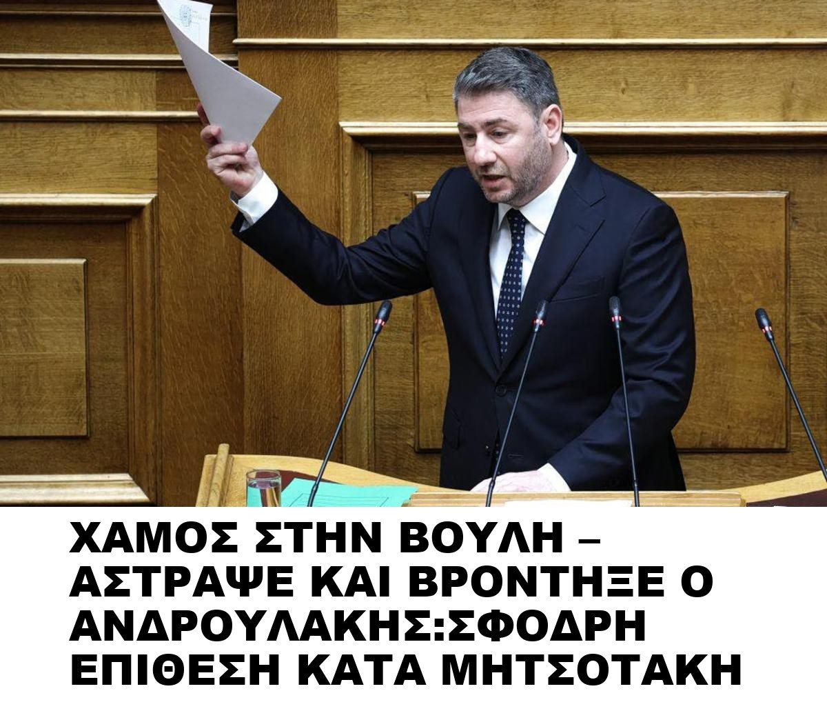 ΧΑΜΟΣ ΣΤΗΝ ΒΟΥΛΗ – ΑΣΤΡΑΨΕ ΚΑΙ ΒΡΟΝΤΗΞΕ Ο ΑΝΔΡΟΥΛΑΚΗΣ:ΣΦΟΔΡΗ ΕΠΙΘΕΣΗ ΚΑΤΑ ΜΗΤΣΟΤΑΚΗ