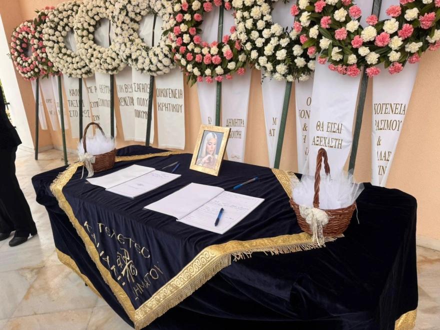 «Καλό ταξίδι αγγελούδι μου», «Σε αγαπάμε Μυρτώ» γράφουν κάποια από τα στεφάνια από συγγενείς και φίλους.