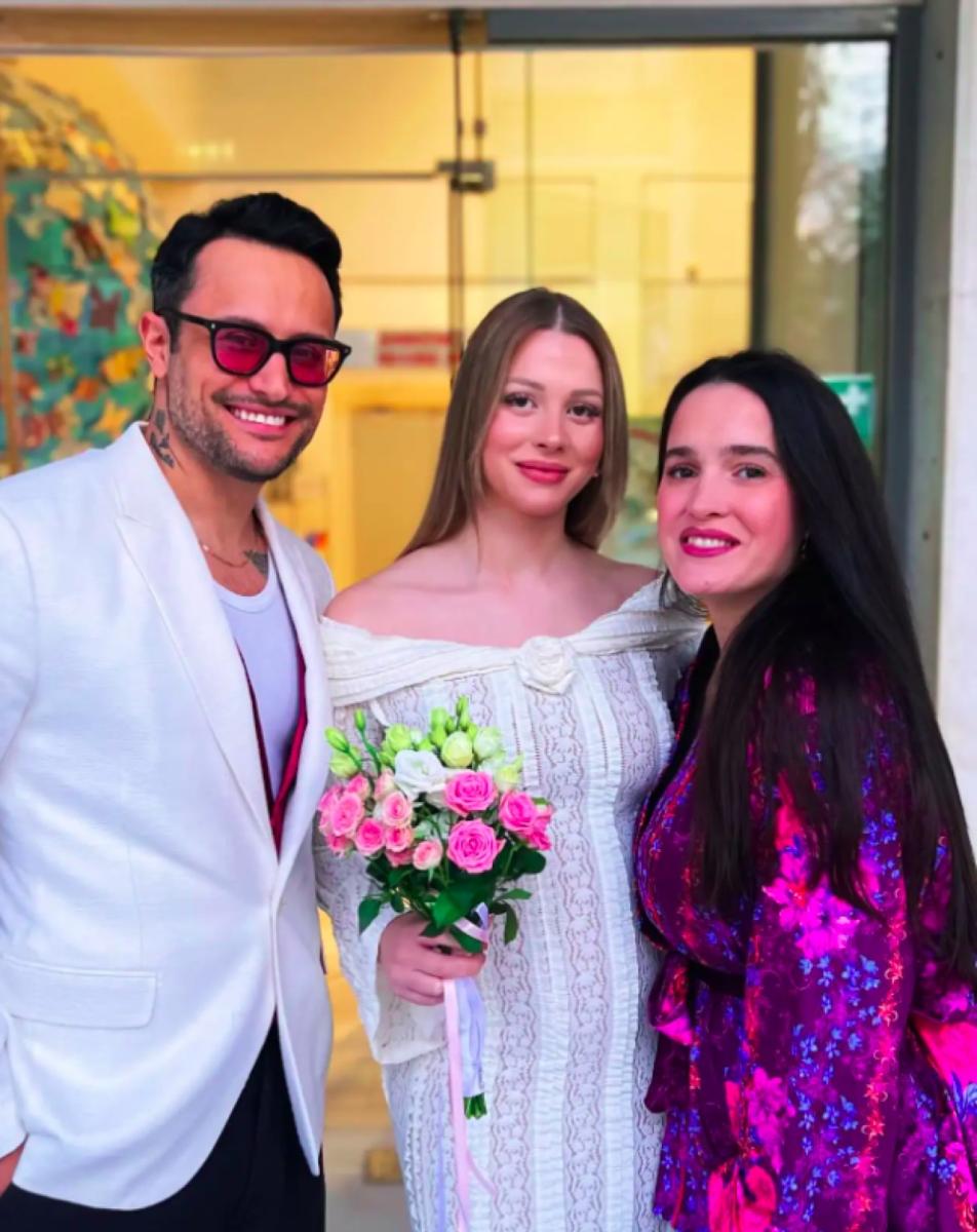Σε φωτογραφίες που δημοσιεύτηκαν στα social media από τους φίλους και την οικογένεια του νιόπαντρου ζευγαριού, βλέπουμε στιγμιότυπα από τον πολιτικό γάμο με τους ίδιους να λάμπουν από χαρά. Τόσο ο Κωνσταντίνος Φραντζής όσο και η σύζυγός του ήταν κομψά και στα λευκά ντυμένοι, ενώ η εγκυμονούσα έλαμπε μέσα στο δαντελένιο μακρύ φόρεμα που επέλεξε για να την σημαντική αυτή ημέρα, το οποίο κολακεύει την φουσκωμένη της κοιλίτσα.