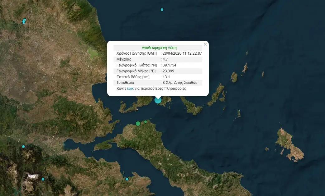 Σεισμός 4,6 Ρίχτερ σημειώθηκε λίγο μετά τις δύο το μεσημέρι στην Σκιάθο και έγινε αισθητός και στην Αττική.