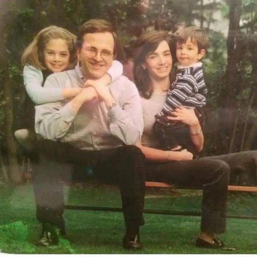 Ο Αντώνης και η Γεωργία Σαμαρά, στον κήπο του σπιτιού τους στην Κηφισιά με τα παιδιά τους Λένα και Κώστα, λίγο μετά τα μέσα της δεκαετίας του ’90