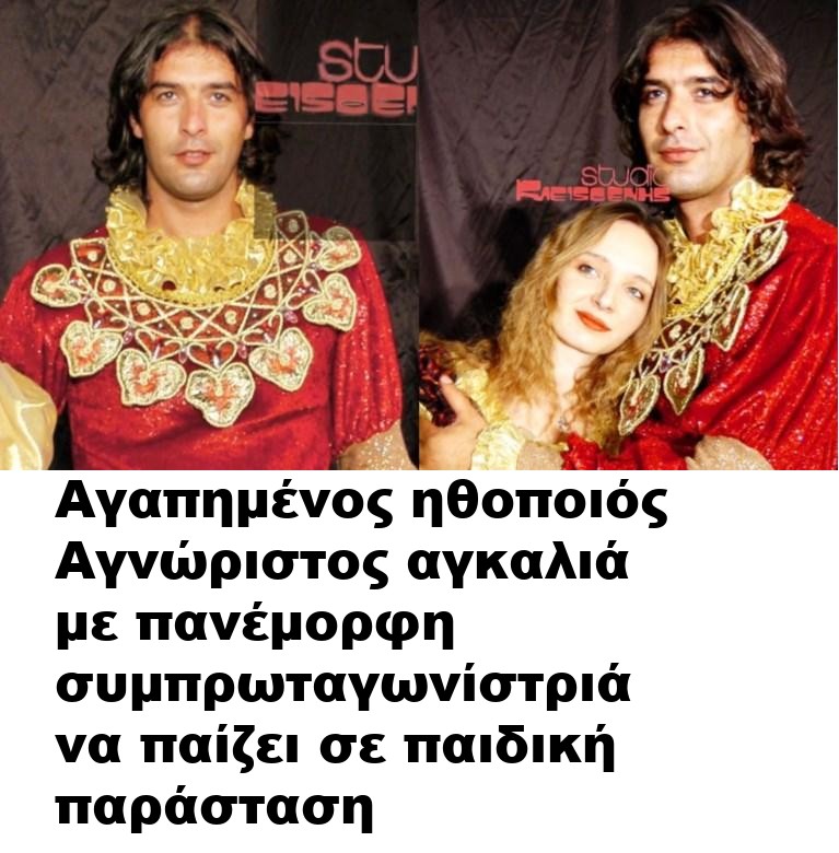 Αγαπημένος ηθοποιός Αγνώριστος αγκαλιά με πανέμορφη συμπρωταγωνίστριά να παίζει σε παιδική παράσταση