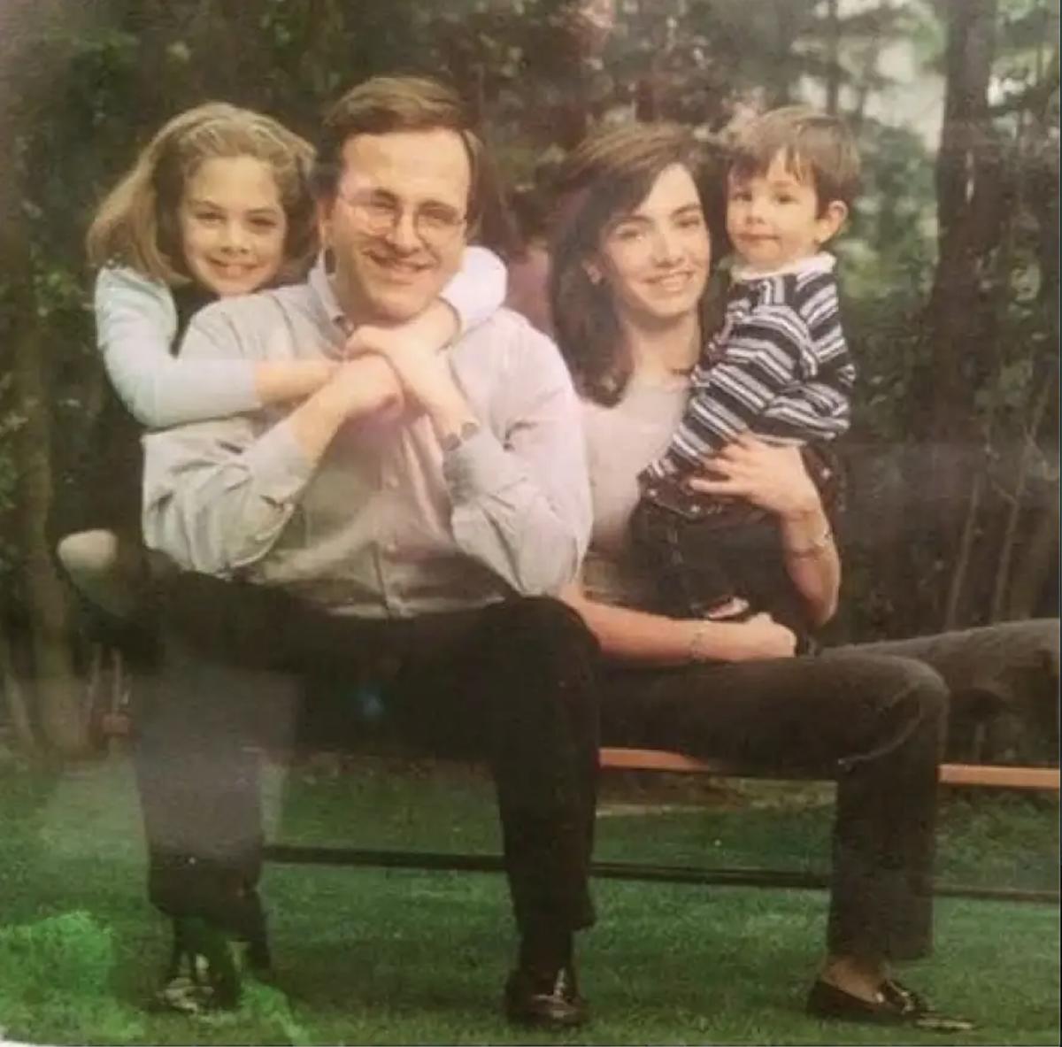 Ο Αντώνης και η Γεωργία Σαμαρά, στον κήπο του σπιτιού τους στην Κηφισιά με τα παιδιά τους Λένα και Κώστα, λίγο μετά τα μέσα της δεκαετίας του ’90