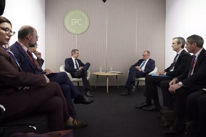 Στη συνέχεια διευκρίνισε ότι δεν συζήτησε το θέμα αυτό με τον Γερμανό Καγκελάριο, Φρίντριχ Μερτς καθώς η συζήτηση εστιάστηκε στην ευρωπαϊκή ατζέντα για την κοινή αμυντική πολιτική και στις πρωτοβουλίες που χρειάζεται να αναλάβει και η Γερμανία.
