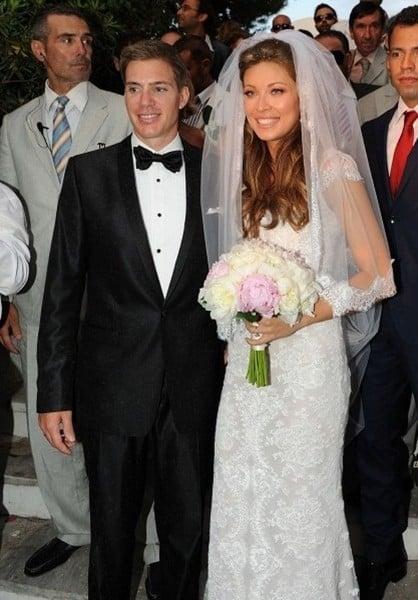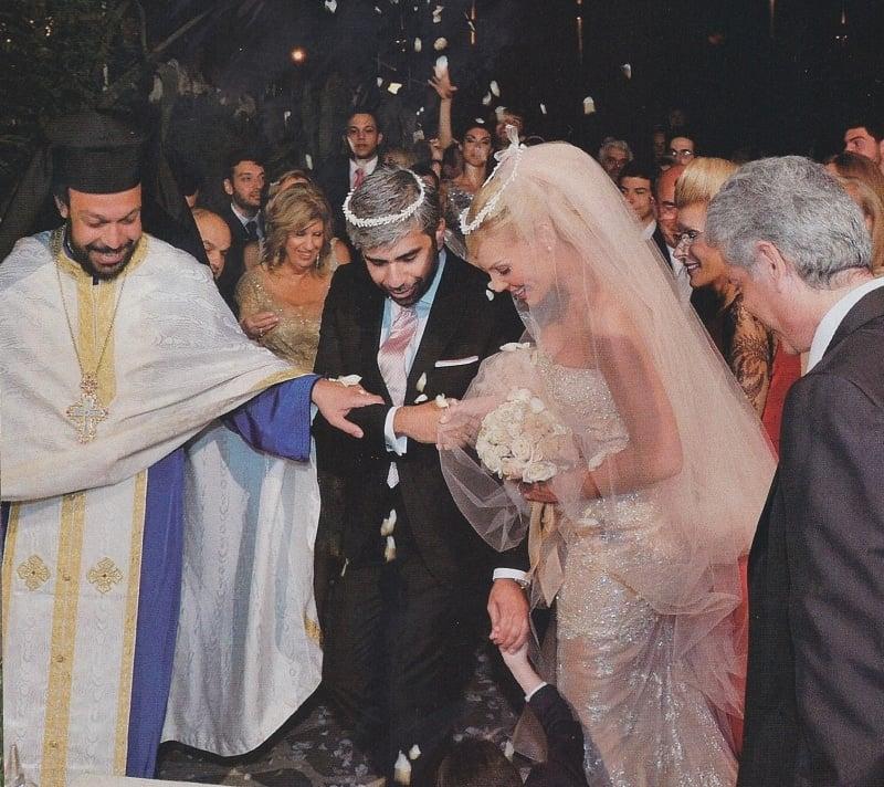 Το ζευγάρι ενώθηκε με τα δεσμά του γάμου στις 26 Ιουλίου 2006, ακριβώς ένα χρόνο μετά την γνωριμία του, ενώ το μυστήριο έγινε στο ξωκλήσι του Αγίου Κωνσταντίνου στο Island, με κουμπάρο τον Γιώργο Βαρδινογιάννη. Κατά τη διάρκεια του έγγαμου βίου τους απέκτησαν τέσσερα παιδιά, τα οποία, αυτή τη στιγμή είναι στην Αθήνα με την μητέρα τους.