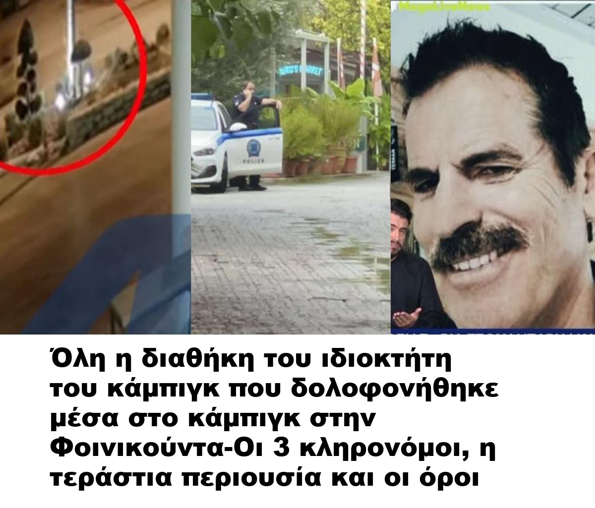 Όλη η διαθήκη του ιδιοκτήτη του κάμπιγκ που δολοφονήθηκε μέσα στο κάμπιγκ στην Φοινικούντα-Οι 3 κληρονόμοι, η τεράστια περιουσία και οι όροι