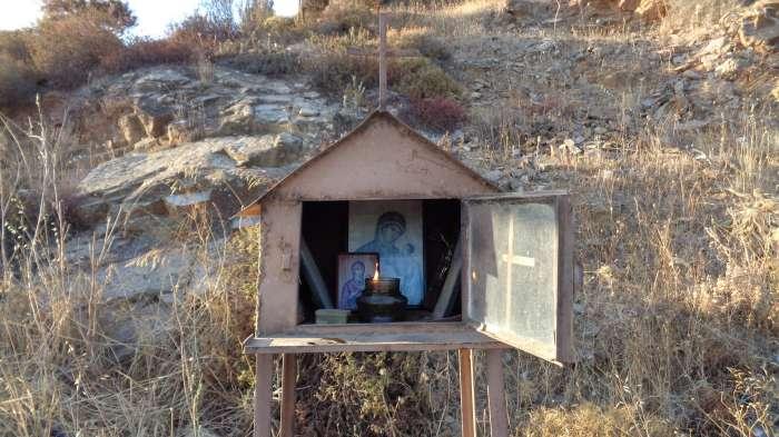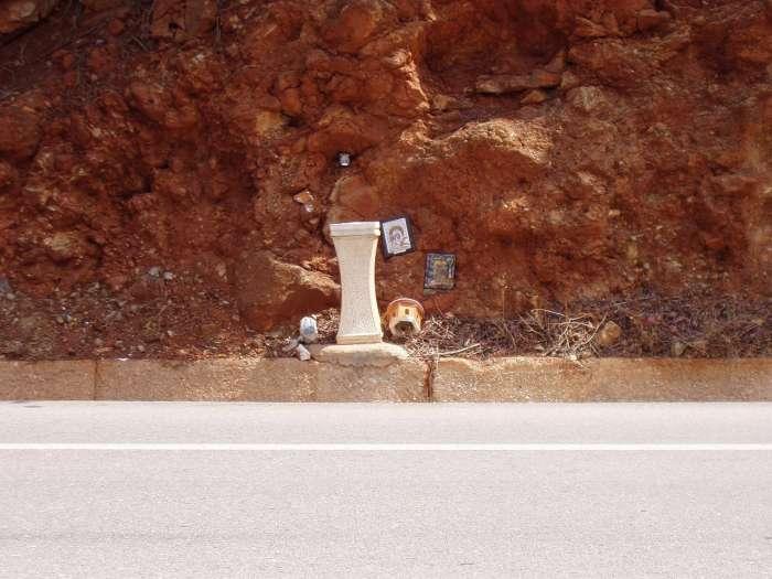 Εκεί που υπάρχουν τα περισσότερα εκκλησάκια, υπάρχουν και ταμπέλες για επικίνδυνες στροφές για κατολισθήσεις για μείωση ταχύτητας γιατί κάποιοι προφανώς σκοτώθηκαν από κατολισθήσεις κτλ. Τώρα δε ξέρω τις έβαζαν μετά τις ταμπέλες ή πριν και δεν τις πρόσεξαν, αυτό δεν το ξέρει κανένας. Είναι τεράστια τα δεδομένα που μπορείς να αντλήσεις και αν μπορούσε κανείς να το κάνει σε όλη την Κρήτη γύρω-γύρω γιατί εγώ το έκανα σε μικρό κομμάτι. Αν το έκανε κάποιος και για όλη την Ελλάδα, εκτιμώ ότι κανείς δεν ξέρει πόσα εκκλησάκια είναι σε όλη τη χώρα. Εγώ τουλάχιστον ξέρω ότι εκεί που περπάτησα είναι 367. Τα άναψα όλα, για ευνόητους λόγους μετά τα έσβηνα μην ανάψει και καμιά πυρκαγιά και τα έχω φωτογραφήσει όλα για λόγους θύμησης και μνήμης, ότι κάποιος πέρασε από εκεί και τους θυμήθηκε. Είναι και πολλά μέρη τα οποία δεν είναι προσβάσιμα.