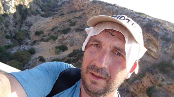 Επειδή είμαι αεροπόρος έχω μάθει να μιλάω έτσι, το πρώτο φως της ημέρας έρχεται 30 λεπτά πριν την Ανατολή. Ξεκίνησα λοιπόν 6.15 έκανα το πρώτο διάλειμμα στην Σκαλέτα μετά το Ρέθυμνο, με τον μετρητή εκεί να γράφει 82.502 βήματα! Εκεί στην Σκαλέτα έμεινα την νύχτα και ξεκουράστηκα σε μια ξαπλώστρα στην παραλία. Δεν με συνόδευε κανένας αν και δικοί μου άνθρωποι μου είχαν πει να το αναφέρω στα κανάλια, αλλά προτιμούσα να το κάνω μόνος μου χωρίς να ξέρει κανένας ποιος και τι. Ήθελα κάποιος να επισκεφθεί αυτά τα 367 εκκλησάκια και να ανάψει το καντήλι τους. Κάποια από αυτά είχαν να ανάψουν και εκατό χρόνια, να φανταστείτε υπήρχαν εκκλησάκια από το 1940 τότε που ήταν ακόμα χωματόδρομος.