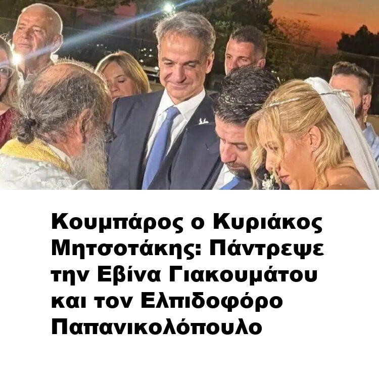 Ο Κυριάκος Μητσοτάκης βρέθηκε το βράδυ της Παρασκευής στην Κηφισιά, όχι για πολιτική εκδήλωση, αλλά για έναν ρόλο πιο προσωπικό: εκείνον του κουμπάρου στον γάμο της Εβίνας Γιακουμάτου και του Ελπιδοφόρου Παπανικολόπουλου.