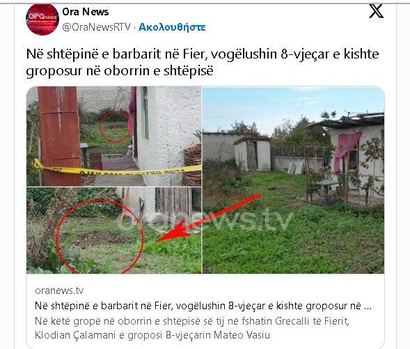 Το περιστατικό συνέβη στο χωριό Γκρετσάλι της περιοχής Φιέρι κι έχει συγκλονίσει τη κοινή γνώμη στην Αλβανία.