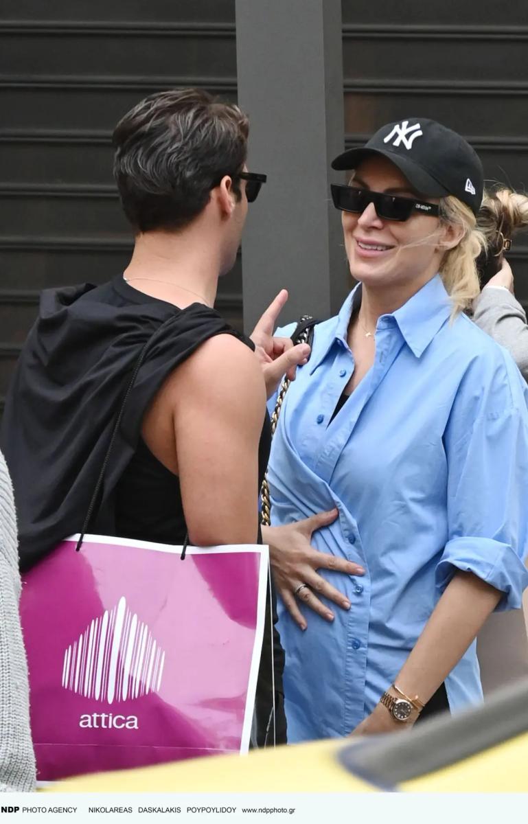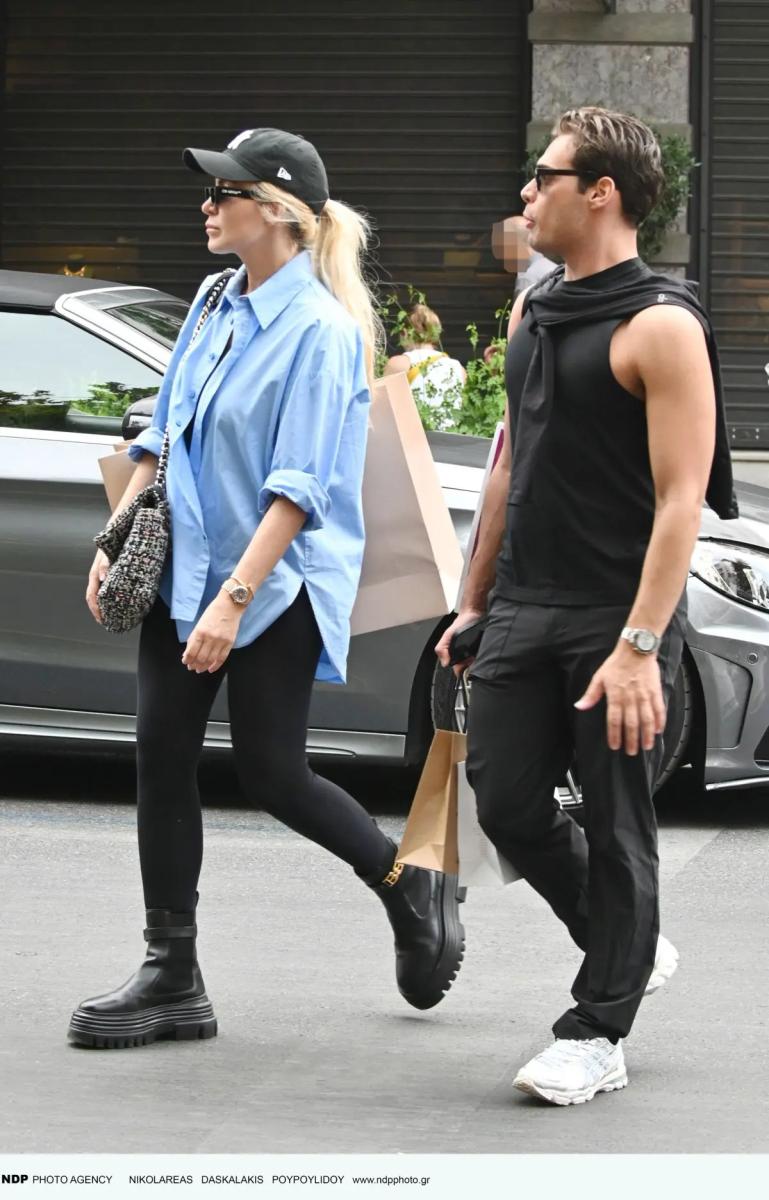 Οι φωτογραφίες τραβήχτηκαν τη στιγμή που η παρουσιάστρια απολάμβανε τη βόλτα της με τον καλό της φίλο Ανέστη Ευαγγελόπουλο, κρατώντας σακούλες από γνωστά καταστήματα.