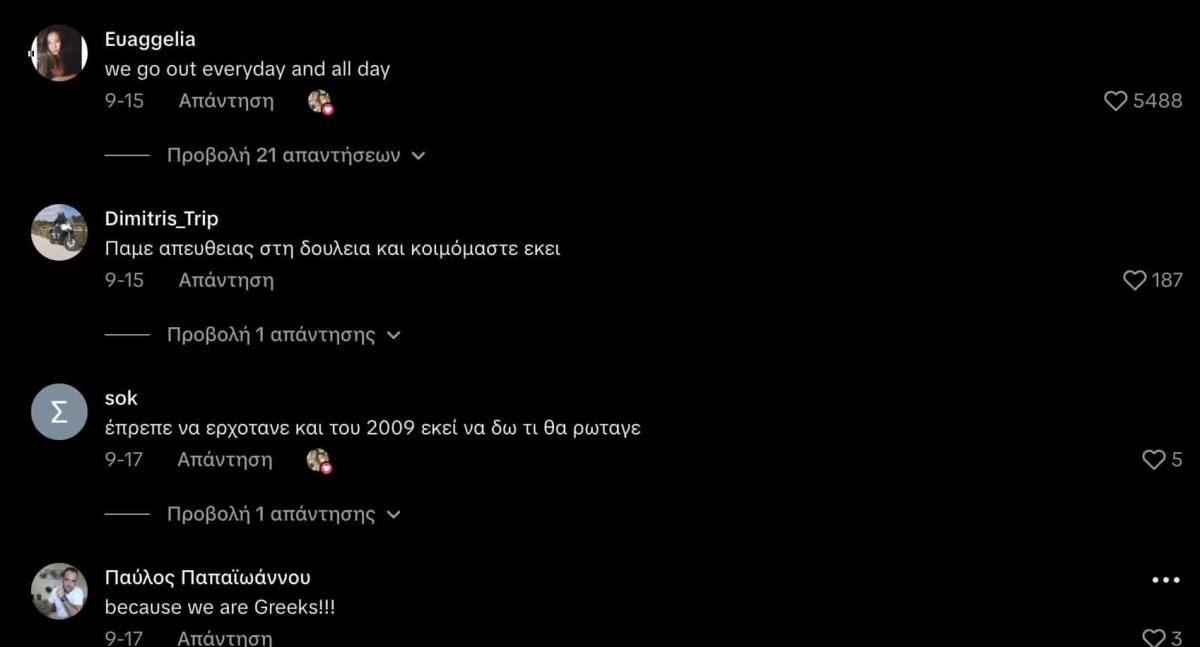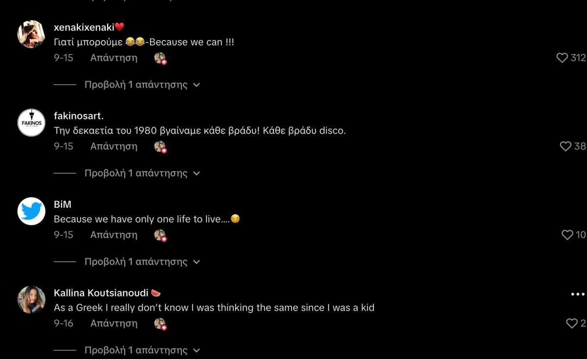 «Είμαι Ελληνίδα και απορώ κι εγώ με αυτό», ενώ άλλοι τόνισαν πως «στην Ελλάδα το Σαββατοκύριακο τελειώνει μόνο τα ξημερώματα της Δευτέρας».