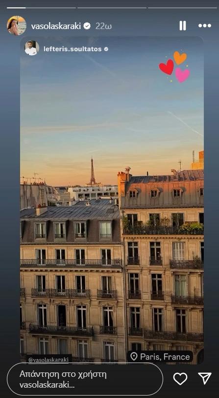 Σύμφωνα με τα stories που ανέβασαν και οι δύο, το ζευγάρι βρίσκεται αυτές τις ημέρες στο μαγευτικό Παρίσι, απολαμβάνοντας μια ρομαντική απόδραση με αφορμή τα γενέθλια της ηθοποιού.