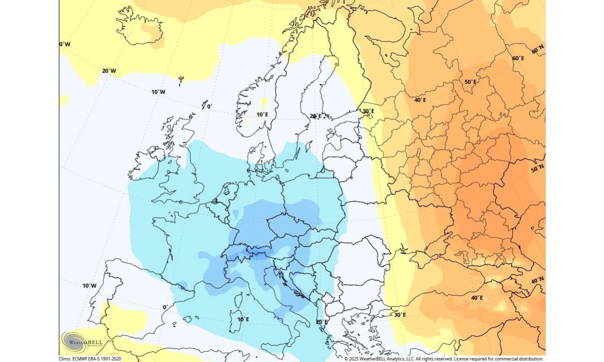 Ομοίως, στην Ευρώπη, το αποδυναμωμένο πεδίο του στροβίλου φαίνεται να επιτρέπει την κάθοδο πιο ψυχρών αερίων μαζών από τη βόρεια θάλασσα προς την Κεντρική και Ανατολική Ευρώπη, κάτι που ήδη έχει αρχίσει να αποτυπώνεται στα μακροπρόθεσμα προγνωστικά.