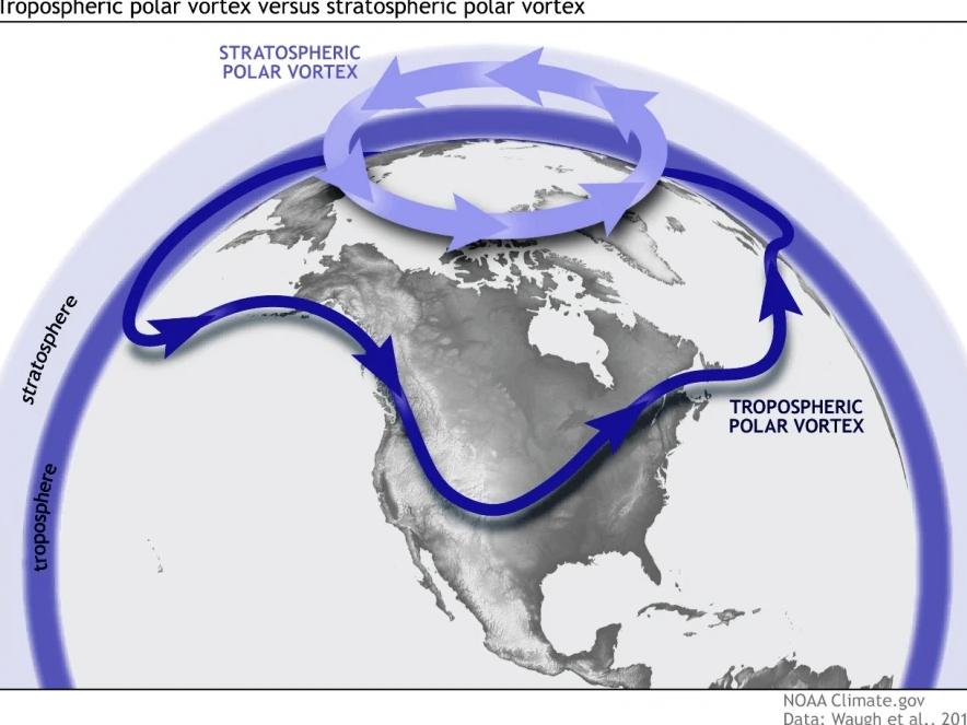 Οι δύο αυτοί στρόβιλοι – ο τροποσφαιρικός και ο στρατοσφαιρικός – συνεργάζονται ή συγκρούονται, επηρεάζοντας τον καιρό από τη Βόρεια Αμερική μέχρι την Ευρώπη και την Ασία.