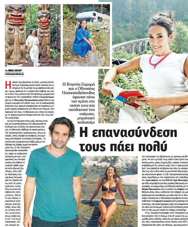 Πλέον η Ευγενία Σαμαρά και ο Οδυσσέας Παπασπηλιόπουλος δίνουν μια ακόμα ευκαιρία στη σχέση τους. Για τις καλοκαιρινές διακοπές τους αρχικά αποφάσισαν να περάσουν μερικές ημέρες χαλάρωσης στο Νησί των Ανέμων. Εκεί χάρηκαν τον ήλιο, τη θάλασσα και ο ένας τον άλλον, με τη χαρακτηριστική διακριτικότητα που τους διέπει ως ζευγάρι.
