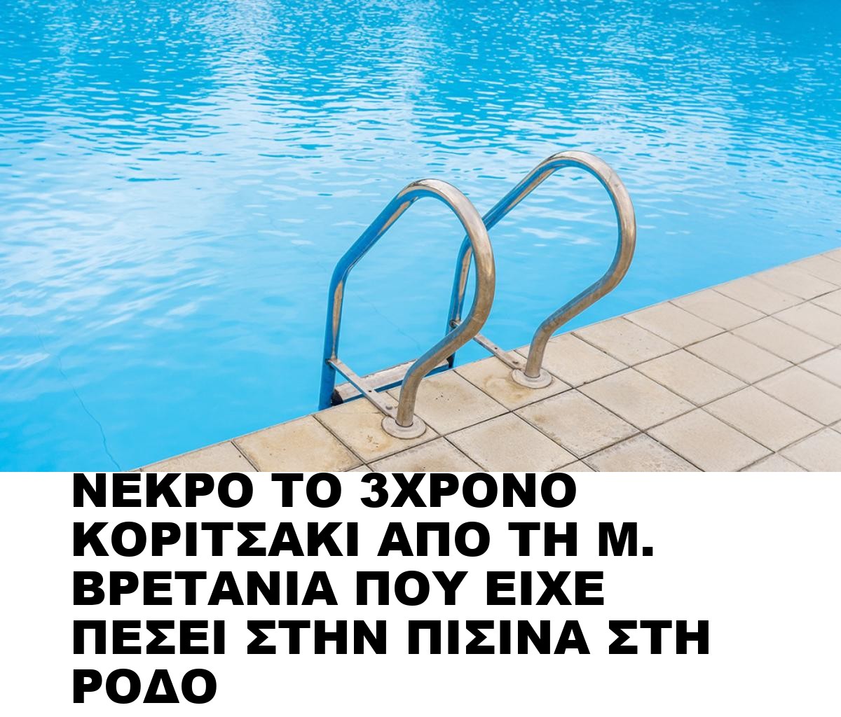 Έχασε τελικά τη μάχη για τη ζωή το 3χρονο κοριτσάκι που είχε ανασυρθεί χωρίς τις αισθήσεις του, από πισίνα ξενοδοχείου στη Ρόδο στις 14 Οκτωβρίου.
