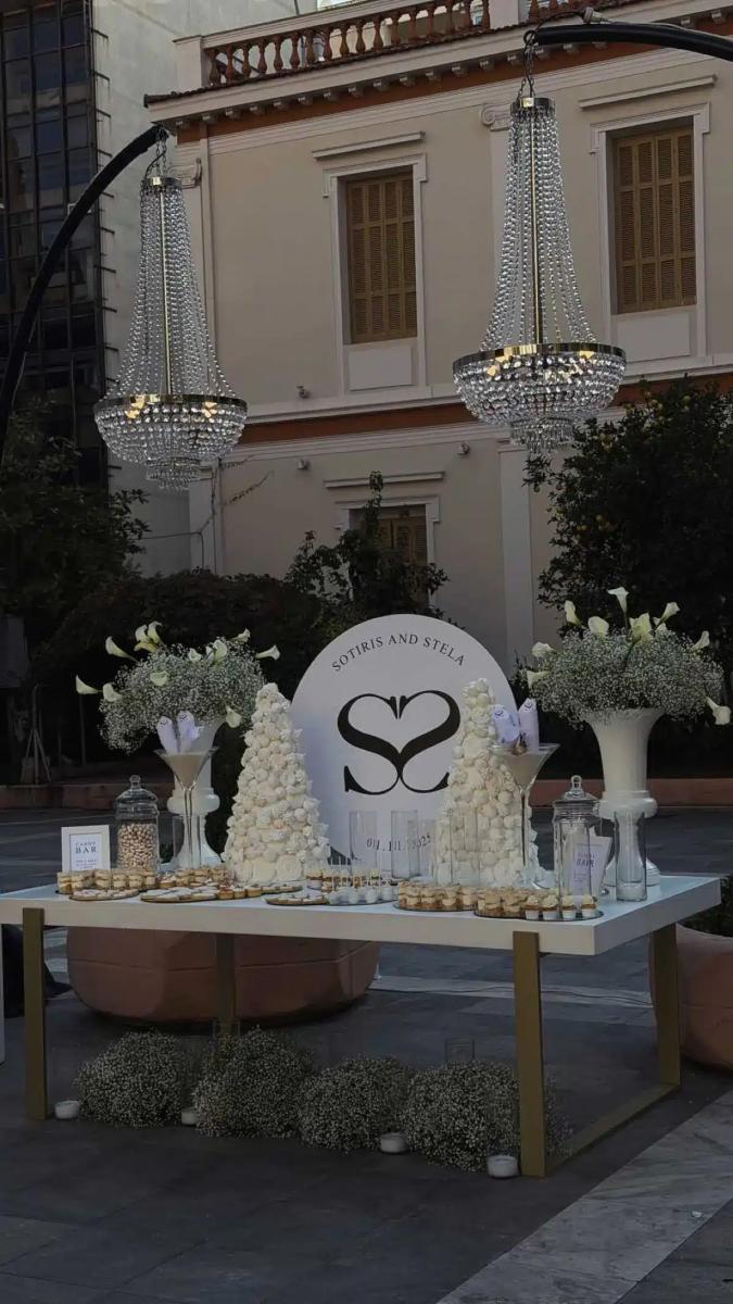 Μέσα από τις αναρτήσεις μάλιστα βλέπουμε και τον στολισμό της εκκλησίας και της δεξίωσης, ο οποίος μοιάζει λες και είναι βγαλμένος από παραμύθι. Μάλιστα, ο γάμος πραγματοποιήθηκε την ώρα που έπεσε ο ήλιος και γι’ αυτό το λόγο το ζευγάρι είχε προβλέψει να τοποθετήσει παντού κεράκια και διάφορα φωτιστικά, κάνοντας το κλίμα ακόμα πιο ρομαντικό και ιδιαίτερο. Ο στολισμός εκπέμπει λάμψη και πολυτέλεια με τους μεγάλους πολυέλαιους και τον περιποιημένο μπουφέ, δημιουργώντας ένα άκρως κομψό και διακριτικό σκηνικό.