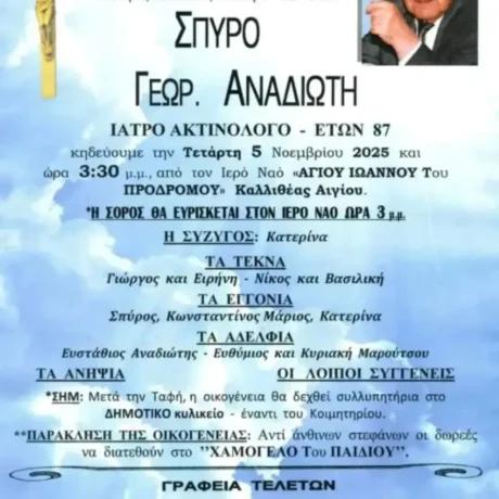 Μάλιστα, η οικογένειά του κάνει έκκληση στον κόσμο που θα παρευρεθεί για το τελευταίο «αντίο» αντί για στέφανα, να καταθέσει δωρεά στο «Χαμόγελο του Παιδιού». Ο Νίκος Αναδιώτης μέχρι στιγμής δεν έχει μιλήσει δημόσια για την σημαντική αυτή απώλεια, καθώς πενθεί την απώλεια του αγαπημένου του ανθρώπου πλάι της οικογένειάς του.