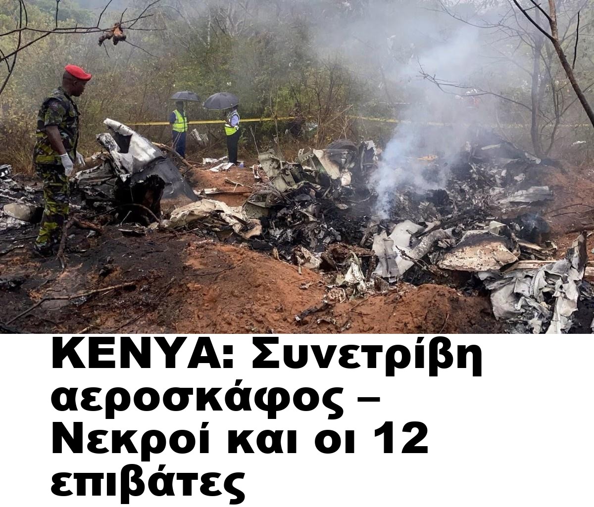 Εναέρια τραγωδία έλαβε χώρα στην κομητεία Κουάλε της Κένυας, το πρωί της Τρίτης (28/10), με τους 12 επιβάτες να χάνουν τη ζωή τους, σύμφωνα με ανακοίνωση της υπηρεσίας Πολιτικής Αεροπορίας της χώρας (KCAA). Όπως αναφέρεται επίσης, υπηρεσίες της κυβέρνησης έχουν μεταβεί στο σημείο για να εξακριβώσουν τα αίτια της συντριβής.