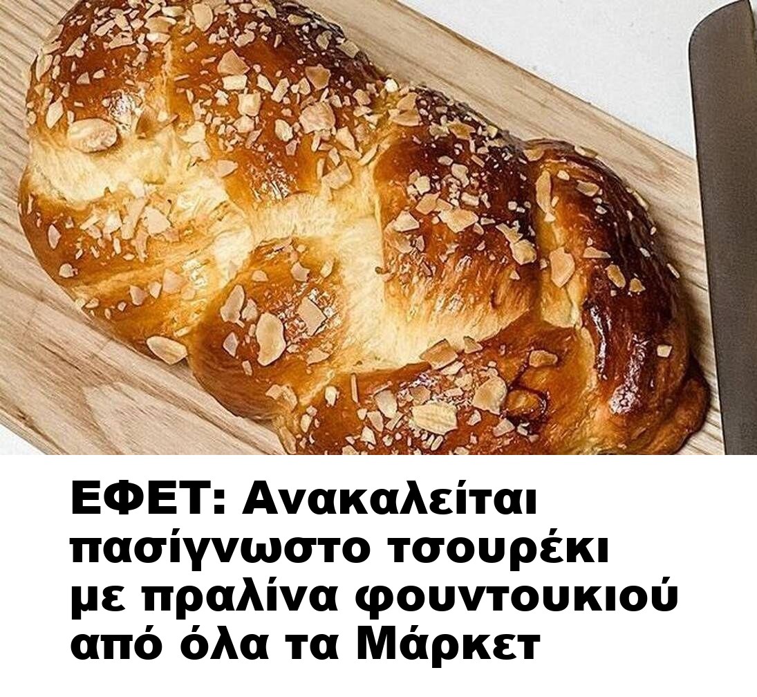 ΕΦΕΤ: Ανακαλείται πασίγνωστο τσουρέκι με πραλίνα φουντουκιού από όλα τα Μάρκετ – ΜΗΝ τα φάτε