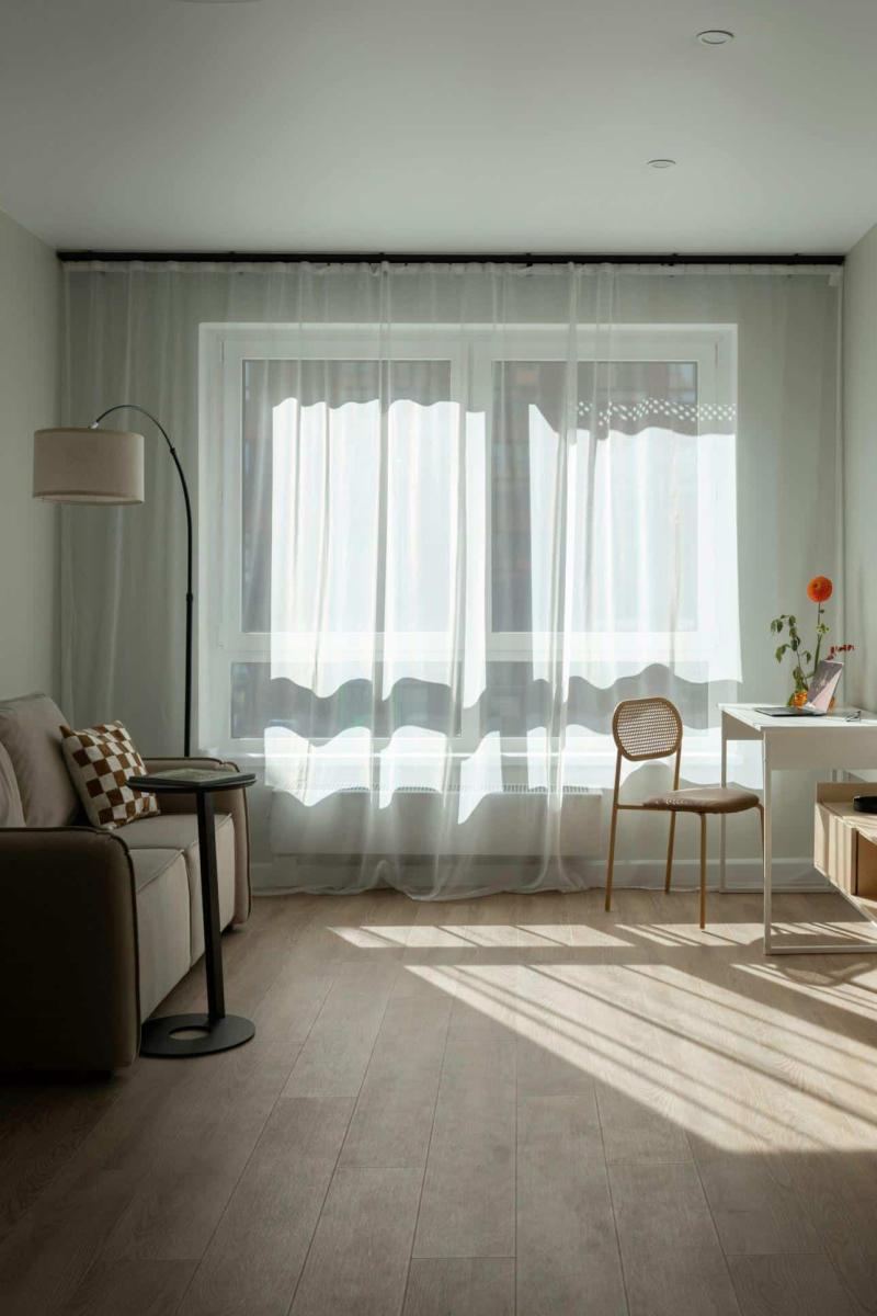 Αυτό το φαινομενικά μικρό διάστημα δημιουργεί αμέσως ένα «φτηνό» οπτικό αποτέλεσμα και διακόπτει τη ροή του χώρου. «Μια κουρτίνα που σταματά πριν το πάτωμα μοιάζει σαν να κόβει το δωμάτιο στη μέση», σημειώνει η Γκιγερμέ.