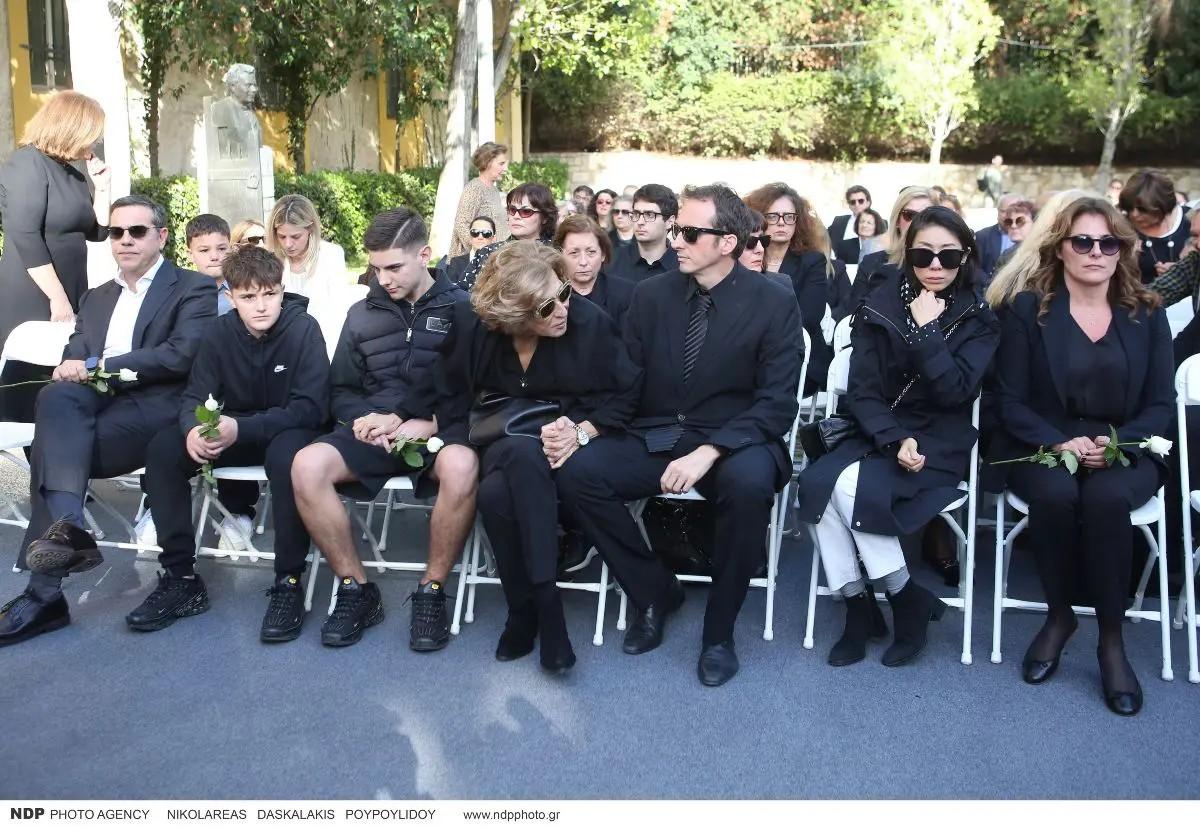 Έφτασαν κρατώντας στα χέρια τους από ένα λευκό τριαντάφυλλο, με την συγκίνηση να φαίνεται ξεκάθαρα στο πρόσωπό τους και κάθισαν δίπλα στην σύζυγο του πολιτικού, δείχνοντάς της την στήριξή τους σε αυτή την τόσο δύσκολη στιγμή.